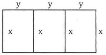 Tiga buah kandang berdampingan masing-masing berukuran x m dan y m yang luasnya masing-masing 6 . Agar panjang pagar yang diperlukan sesedikit mungkin, maka panjang x dan y berturut-turut adalah...