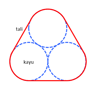 Tiga buah kayu olahan yang identik diikat dengan tali dan penampangnya digambarkan seperti gambar berikut.