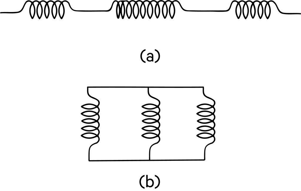 Tiga buah pegas identik dengan konstanta pegas k = 600 N/m dirangkaikan seri dan paralel seperti pada gambar. Berapakah nilai konstanta rangkaian seri dan paralel pegas tersebut?
