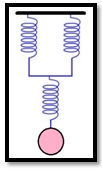 Tiga buah pegas yang identik mempunyai konstanta 120 N/m, disusun seperti pada gambar. Jika benda yang tergantung bermassa 500 gram, maka energi potensial yang dihasilkan oleh rangkaian pegas tersebut adalah ….