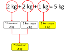 2 buah kemasan 2 kg dan 1 buah kemasan 1 kg
