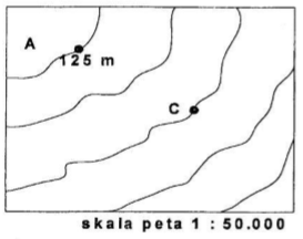 Titik A memiliki ketinggian +125 m di atas permukaan air laut dan ketinggian tempat kota C adalah ....