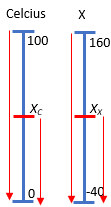 Titik beku dan titik didih air jika diukur termometer X masing-masing -40°X dan 160°X. Pada saar termometer X mengukur suhu suatu zat, angka yang terbaca adalah 5°X. Suhu zat tersebut jika diukur oleh termometer Celsius adalah....