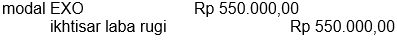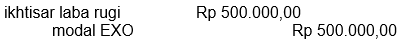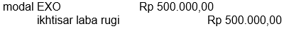Toko EXO menderita rugi sebesar Rp 500.000,00 jurnal penutup untuk penutupan akun ikhtisar laba rugi yang tepat adalah ....