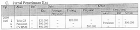 Pencatatan transaksi ke dalam jurnal penerimaan kas adalah ....