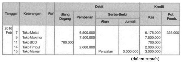Transaksi tersebut dicatat dalam jurnal pengeluaran kas sebagai berikut.