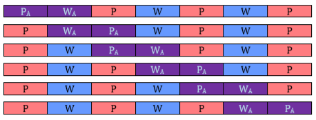 Tujuh finalis lomba menyanyi tingkat SMA di suatu kota berasal dari 6 SMA yang berbeda terdiri atas 4 pria dan 3 wanita. Diketahui satu pria dan satu wanita berasal dari SMA “A”. jika urutan tampil diatur bergantian antara pria dan wanita, serta finalis dari SMA “A” tidak tampil berurutan, maka susunan tampil yang mungkin ada sebanyak .... (SBMPTN 2016)