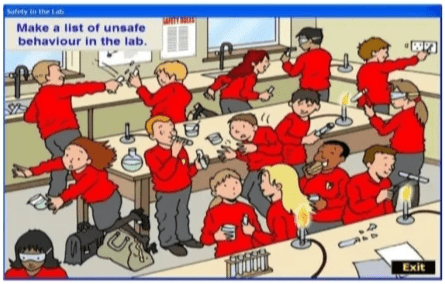 Tuliskan 5 tanda/rambu/gambar yang berhubungan dengan keselamatan kerja laboratorium beserta penjelasannya!