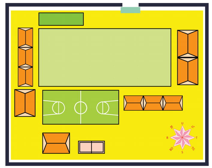 Para penerima tamu telah bertugas dengan baik. Para juri memberikan pujian kepada mereka. Kepala sekolah dan para guru juga memberikan pujian. Semua anak-anak senang dan bersemangat mengerjakan tugasnya. Berikut ini denah yang digunakan Udin dan teman-teman.