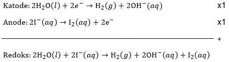 Tuliskan reaksi elektrolisis larutan KI (elektrode grafit).
