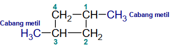 Tuliskan rumus struktur 1,3-dimetilsiklobutana.