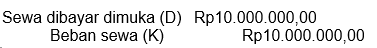 UD Manis membayar sewa toko sebesar Rp12.000.000,00 pada awal November 2017 untuk satu tahun dan mencatatnya sebagai beban. Bagaimanakah jurnal pembalik pada awal periode berikutnya?