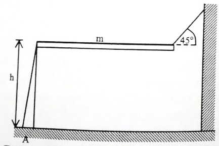 Batang homogen bermassa m, dalam kondisi seperti gambar di atas. Dengan percepatan gravitasi g, besar torsi yang dialami tiang penumpu terhadap titik tancapnya, A adalah ….