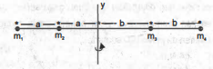 Massa = = 4 kg dan = = 2 kg, panjang a = 1 meter dan b = 2 meter serta massa batang penghubung di abaikan, momen inersia sistem partikel terhadap sumbu Y adalah ...