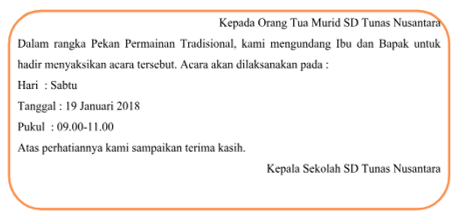 mengundang orang tua murid hadir menyaksikan Pekan Permainan Tradisional