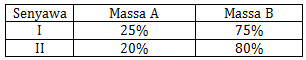 Unsur A dan B dapat membentuk senyawa I dan II dengan komposisi massa terlihat dalam tabel berikut.