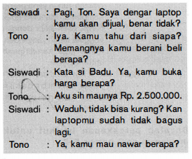 Unsur negosiasi yang tidak terdapat pada teks tersebut adalah . . .
