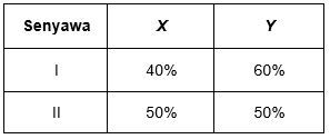 Unsur X dan Y membentuk dua jenis senyawa, berturut-turut mengandung 40% dan 50% unsur X. Jika massa unsur X dalam kedua senyawa itu sama, perbandingan massa unsur Y dalam senyawa I : senyawa II adalah ...