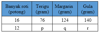Untuk membuat potong kue bolu pandan, diperlukan tepung terigu , margarin, dan gula pasir. Tentukan perbandingan banyak bahan yang dibutuhkan untuk membuat potong kue tersebut!