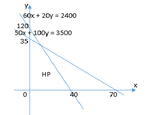 Untuk membuat satu cetak roti A dipergunakan 50 gram mentega dan 60 gram tepung. Untuk membuat satu cetak roti B diperlukan 100 gram mentega dan 20 gram tepung. Jika tersedia 3,5 kg mentega dan 2,4 kg tepung, maka jumlah kedua roti terbanyak yang dapat dibuat adalah...