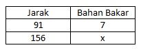 Untuk menempuh jarak 91 km dengan menggunakan mobil diperlukan 7 liter bahan bakar. Jika jarak yang ditempuh 156 km, dan harga 1 liter bensin Rp8.500,00. Biaya minimal yang dibutuhkan untuk membeli bahan bakar tersebut adalah ....