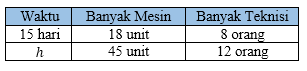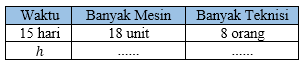 Untuk merakit unit mesin mobil dibutuhkan orang teknisi dengan waktu hari. Berapa hari waktu yang dibutuhkan untuk merakit unit mesin mobil dengan tipe yang sama dengan orang teknisi? untuk mengerjakan soal ini, salin dan lengkapilah tabel berikut!