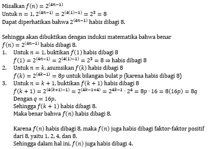 Untuk setiap bilangan asli, dengan pembuktian induksi matematika, habis dibagi oleh ...