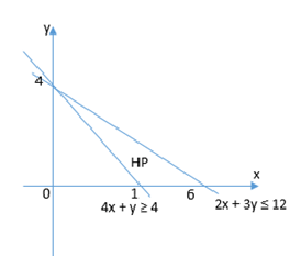 Untuk (x, y) yang memenuhi 4x + y ≥ 4, 2x + 3y ≤ 12, nilai minimum untuk f = x + y adalah....