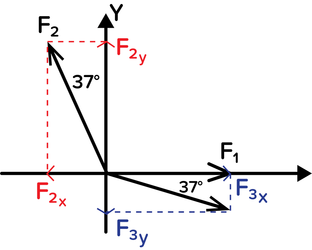 Vektor F1 = 9 N, F2 = 15 N,dan F3 = 10 N diletakkan pada diagram Cartesius seperti pada gambar.