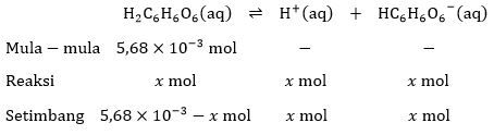 Vitamin C ( = 176) memiliki nama lain asam askorbat. Strukturnya terion sesuai reaksi berikut.