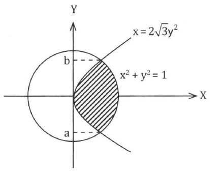Volume benda putar dari daerah yang dibatasi oleh kurva x = dan di dalam lingkaran , diputar mengelilingi sumbu Y adalah...