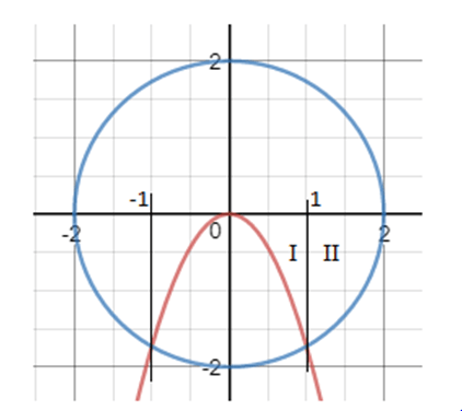 Volume benda putar yang berbentuk dari daerah yang dibatasi oleh kurva y = , sumbu-x dan lingkaran x2+y2 = 4 diputar mengelilingi sumbu x adalah…