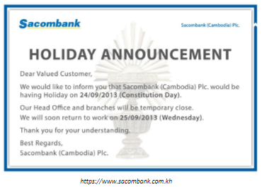 What does this sentence mean ‘Our Head Office and branches will be temporary close’?