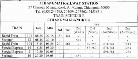 Which train leaves Chiangmai the earliest for Bangkok?