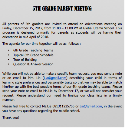 Why does the school invite the parents to attend the meeting?