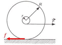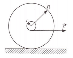 Yoyo bermassa m ditarik dengan gaya F yang tidak terlalu besar sehingga yoyo tersebut menggelinding seperti gambar berikut.