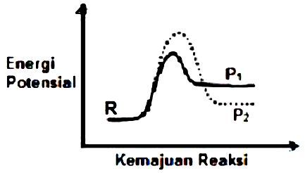 Zat R dapat bereaksi membentuk produk P1 atau produk P2. Profil reaksi untuk dua reaksi tersebut ditunjukkan di bawah ini: