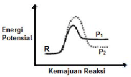 Zat R dapat bereaksi membentuk produk P1 atau produk P2. Profil reaksi untuk dua reaksi tersebut ditunjukkan pada grafik di bawah ini: