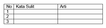 Adakah kata sulit yang kalian temukan pada bacaan tersebut? Jlka ada, tuliskan lalu carilah artinya (bisa menggunakan Google untuk mencari arti kata sulit). Tuliskan dalam bentuk tabel seperti berikut.