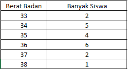 Perhatikan tabel frekuensi berat badan siswa kelas VI