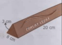Sebuah wadah cokelat berbentuk prisma segitiga. Tentukanlah volume cokelat yang dapat dimasukkan ke dalam wadah tersebut. Jika cokelat beratnya