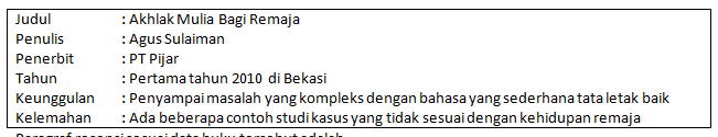 Buku yang digunakan sebagai rujukan berjudul “Menulis secara Populer” karangan Ismail Marahmin. Buku tersebut terbit pada tahun 1994 oleh penerbit Pustaka Jaya di Jakarta. |