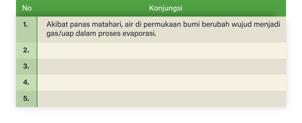 Isilah kolom berikut dengan kata-kata yang menunjukkan hubungan sebab-akibat kategori verba dalam teks “Siklus Hidrologi”.
