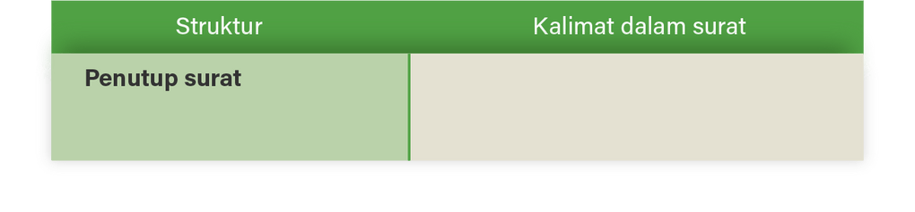 ldentifikasilah struktur surat lamaran pekerjaan tersebut dengan mengisi tabel berikut!