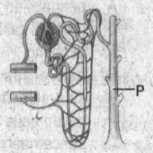 Proses pembentukan urine yang berlangsung pada bagian yang ditunjuk huruf P adalah ....