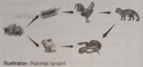 Di ekosistem sawah terjadi jaring-jaring kehidupan seperti berikut.