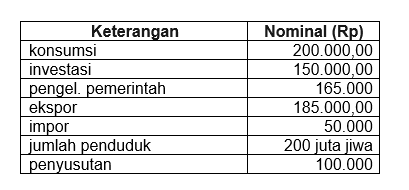 Diketahui suatu negara mempunyai data dalam satu tahun (dalam miliar):