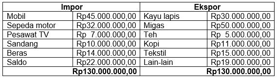 Neraca perdagangan negara Pandawa di atas mencerminkan ....