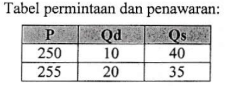 Berdasarkan tabel di atas, maka harga keseimbangan adalah ...