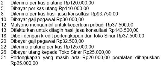 Kantor konsultan pajak Mulyono pada 1 Desember 2017 membukukan transaksi berikut! Transaksi bulan Desember